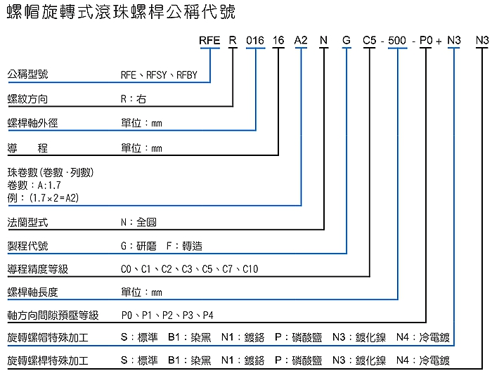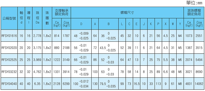 注:RFSY與RFBY精度規格相同,選擇RFBY精度可按上表參考。