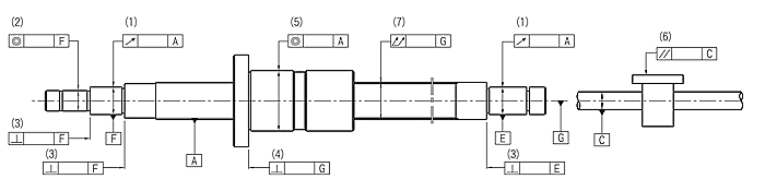 (2)相對于螺桿支持部位的軸線F,測定零件安裝部位的同軸度。