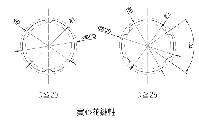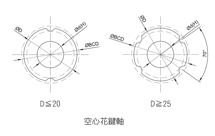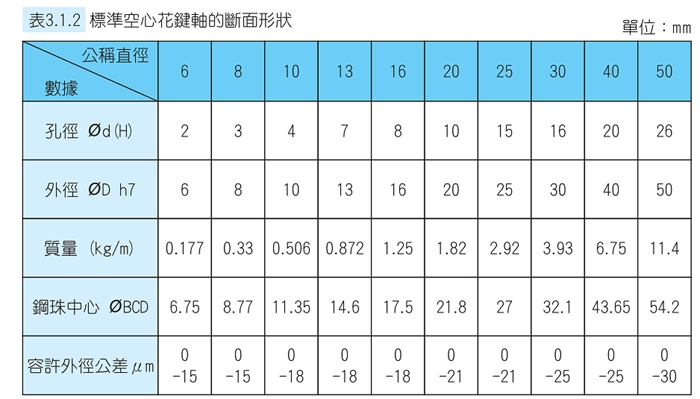 若需要配管、配線、排氣貨減輕重量的地方,可使用中空花鍵軸