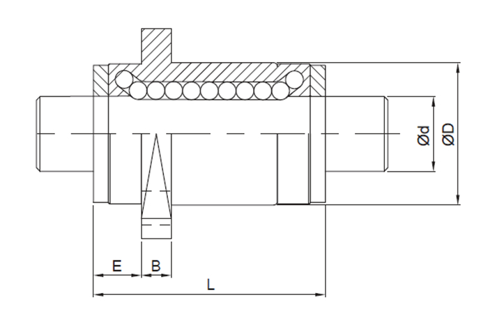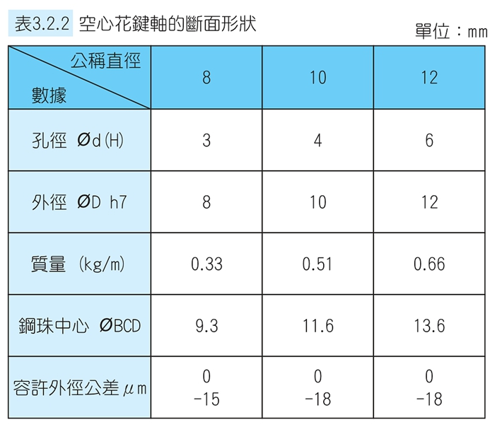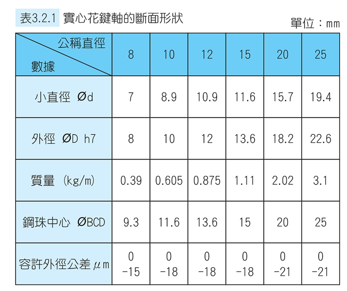 | 型號 | 軸徑 | 滾珠列 | 花鍵軸承套 | |||||||