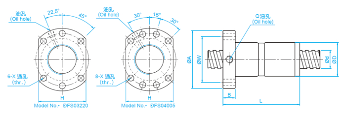 臺灣TBI高防塵絲桿DFSR3220,直徑為31mm,導程為20mm,螺母對稱安裝孔的距離為65mm.潤滑與磨擦:直線軸承內部注入防蝕油,若用油脂潤滑時,先用煤油或有機溶濟清除防蝕油,風干后再添加潤 滑脂。(建議使用粘性標記為N0.2的鋰皂潤滑脂. )。