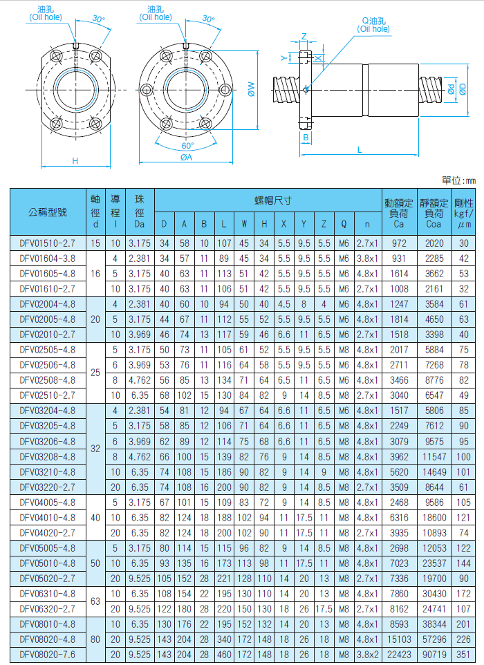 TBI滾珠絲桿DFV系列是雙螺帽設計,循環方式是外循環,它具有較高的經濟性,可采用于導程或者螺桿外徑比較大機器,同時也有高負荷的用途。