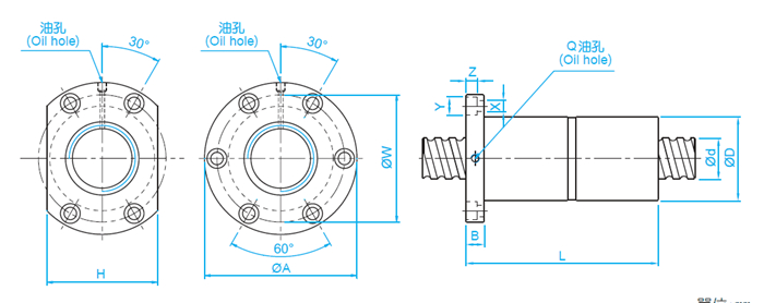 ③查看螺母尺寸確定行程及相關(guān)絲杠軸端數(shù)據(jù)