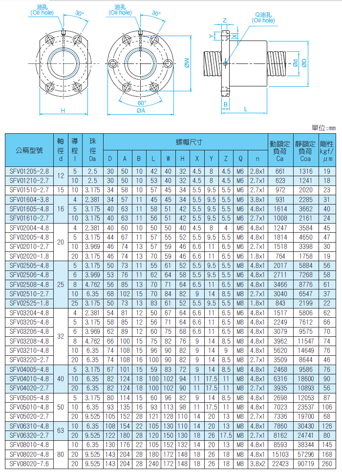 • 產品型號:SFV重載型滾珠絲桿