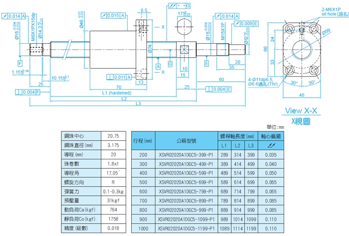 • 產品型號:XSV滾珠絲桿