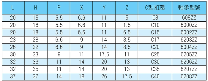 3.支持端螺桿支撐座,將軸承放入螺桿內(nèi),并以C型扣環(huán)固定。