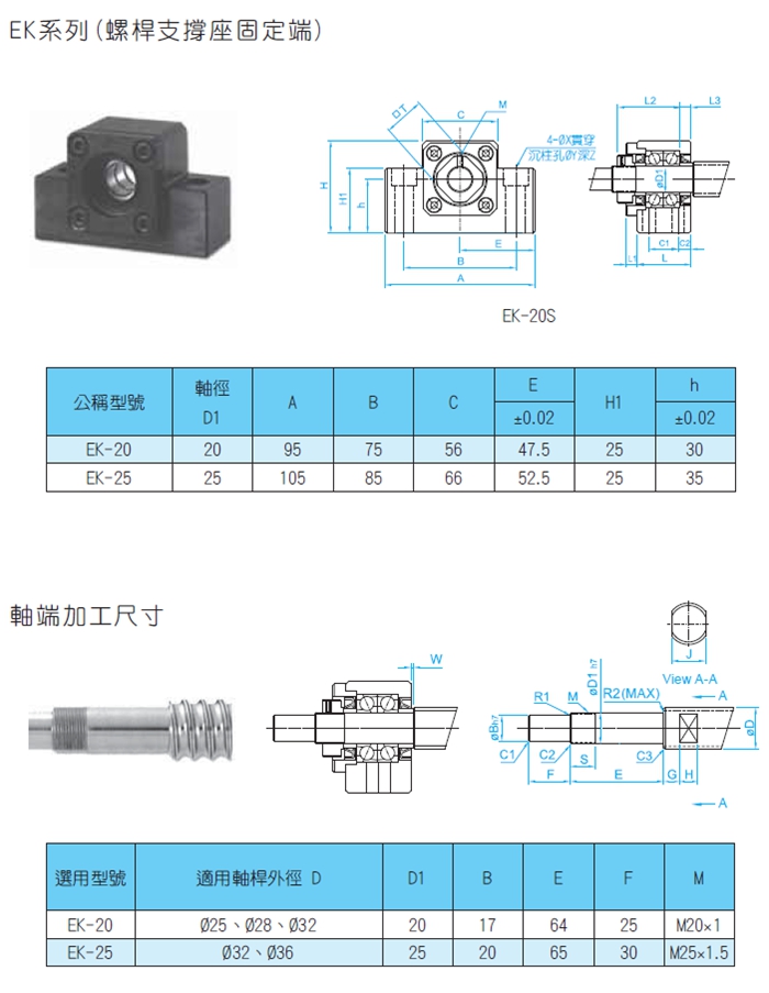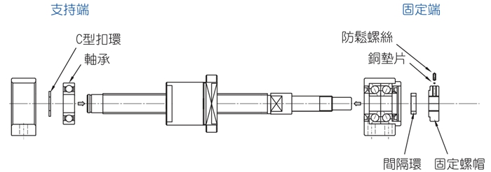 3.支持端螺桿支撐座,將軸承放入螺桿內,并以C型扣環固定。