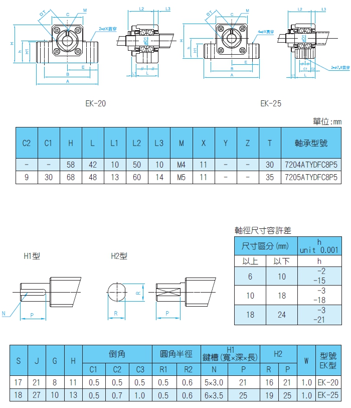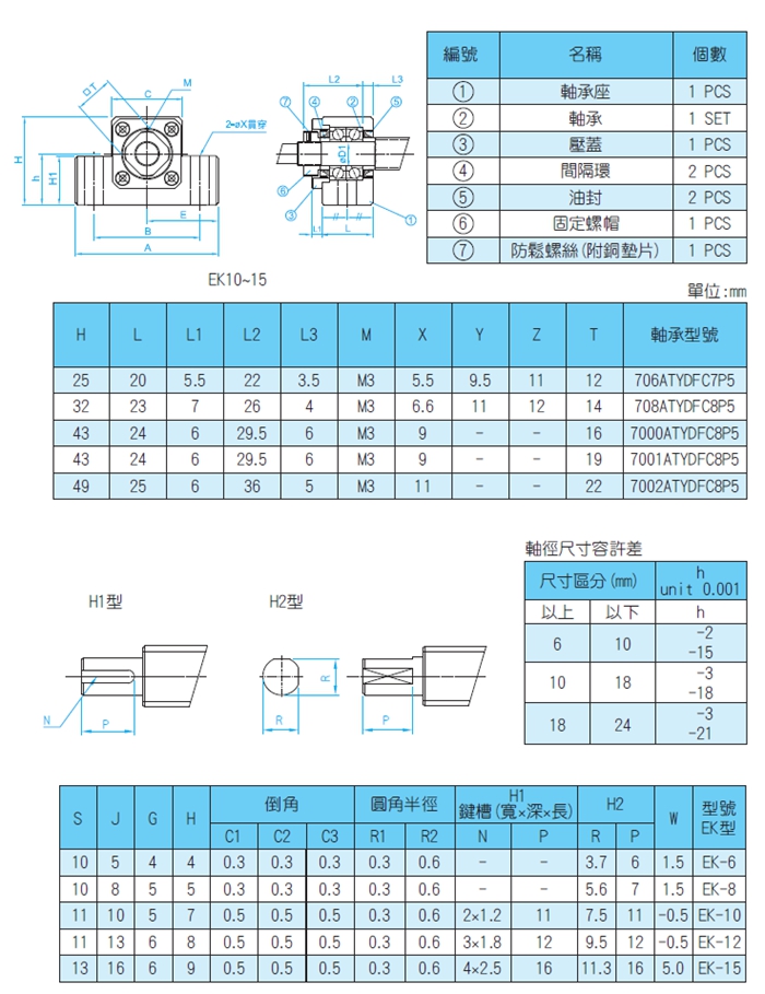 滾動TBI絲杠軸承座一般由內圈、外圈、滾動體和保持架組成,其中內圈的作用是與軸相配合,并與軸 一起旋轉,外圈作用是與軸承座相配合,起支撐作用,滾動體是借助于保持架均勻的將滾動 體分布在內圈和外圈之間,其形狀大小和數量直接影響著滾動軸承的使用性能和壽命,保持 架能使滾動體均勻分布,防止滾動體脫落,引導滾動體旋轉起潤滑作用。